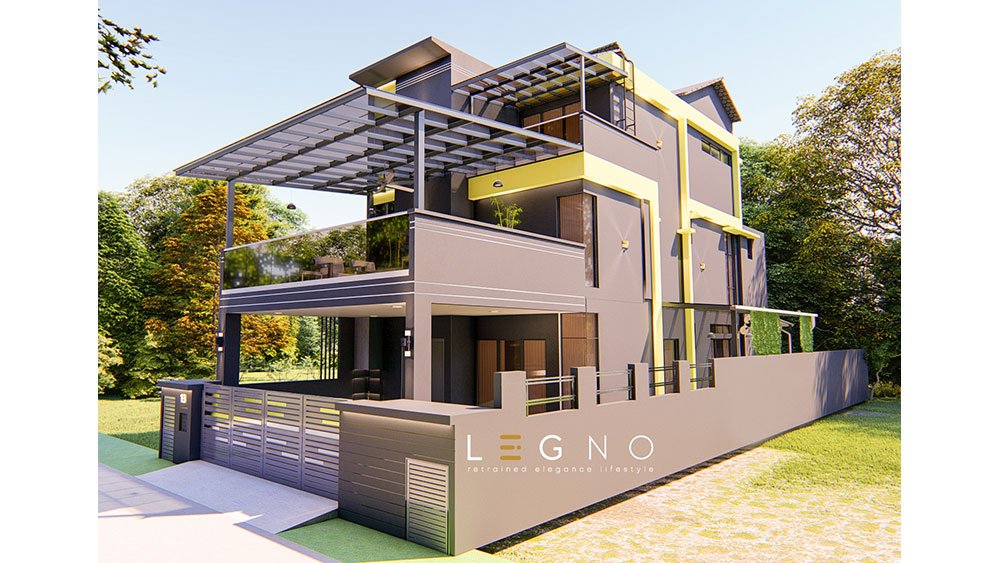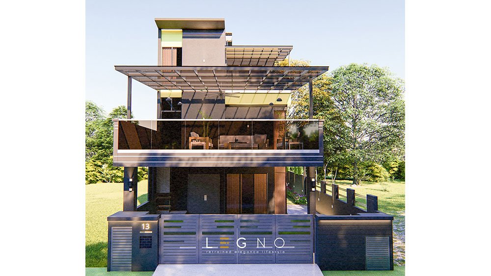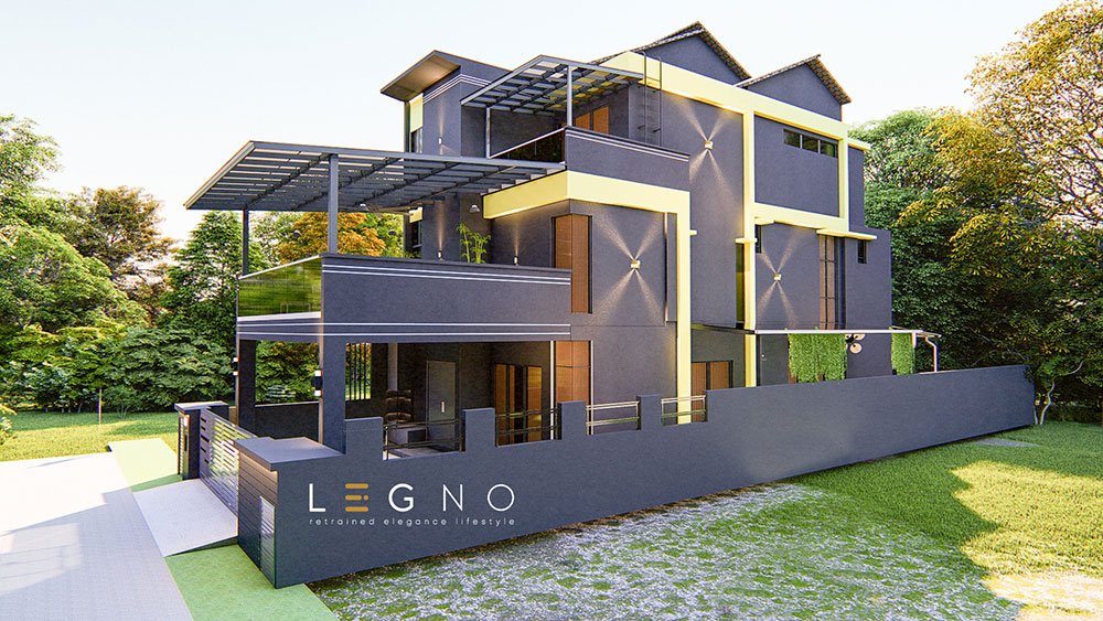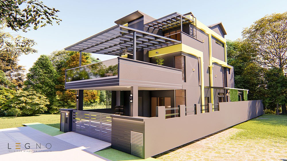 槟城垄尾 Rambai 住宅现代建筑与简洁线条的智能外墙设计。