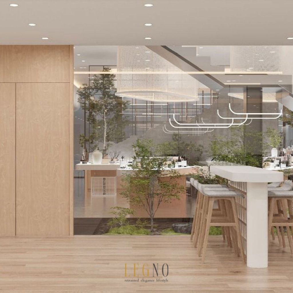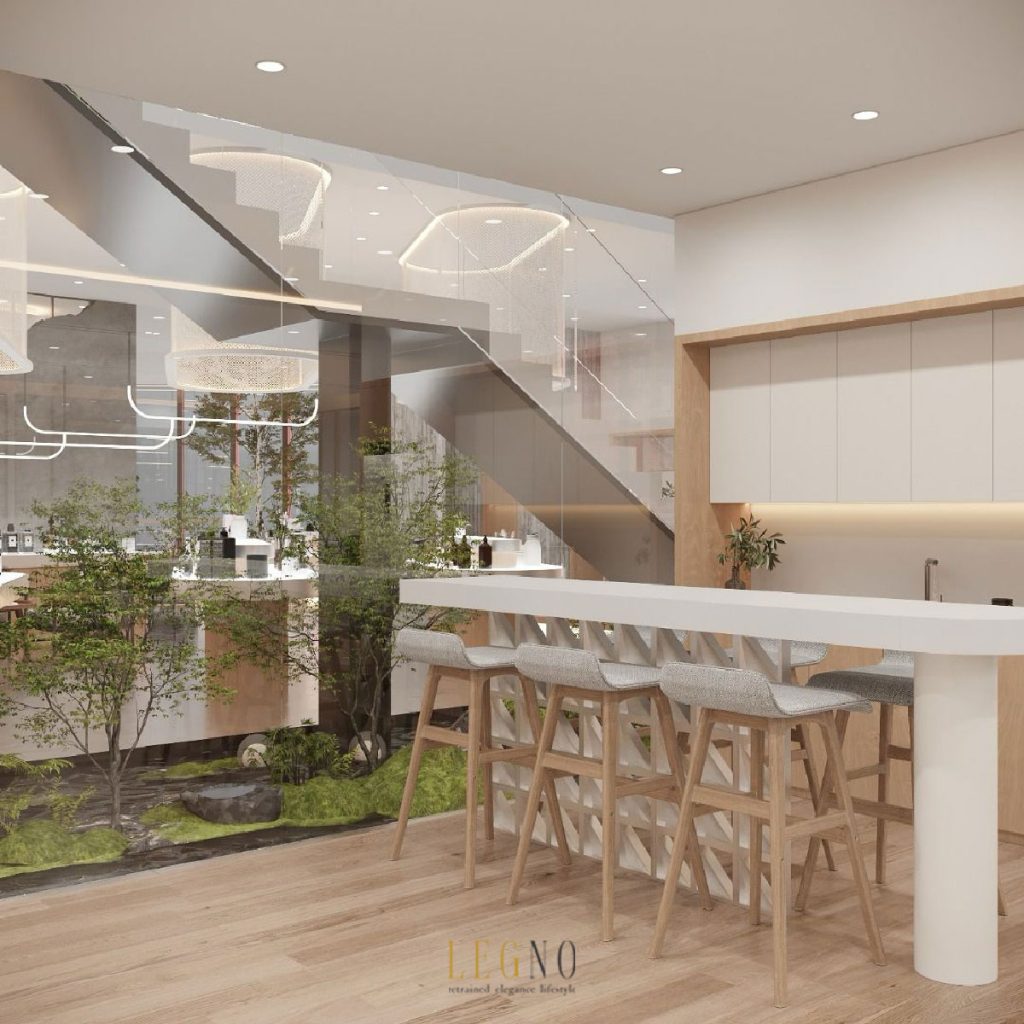 整体以北欧清新为基调:暖木饰面、浅色混凝土肌理、自然采光与亚光白形成干净而优雅的空间语汇。通过玻璃隔断保持开阔视野,减轻压力、提升专注,同时把视线与日光延伸到室内花园,让明亮度深入平面更深处。